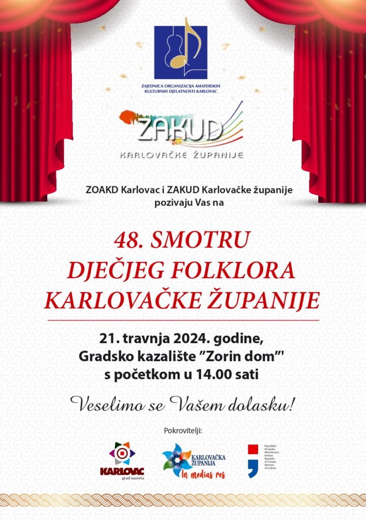 U nedjelju, 21. travnja 2024. godine imate priliku gledati gotovo 600 djece koja će na pozornici izvoditi tradicijske dječje igre, pjesme i plesove s područja naše županije.