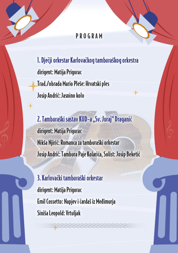 U revijalnom tonu nastupit će mladi tamburaši OŠ “Ivan Goran Kovačić” iz Duge Rese sa svojim voditeljima prof. Josipom