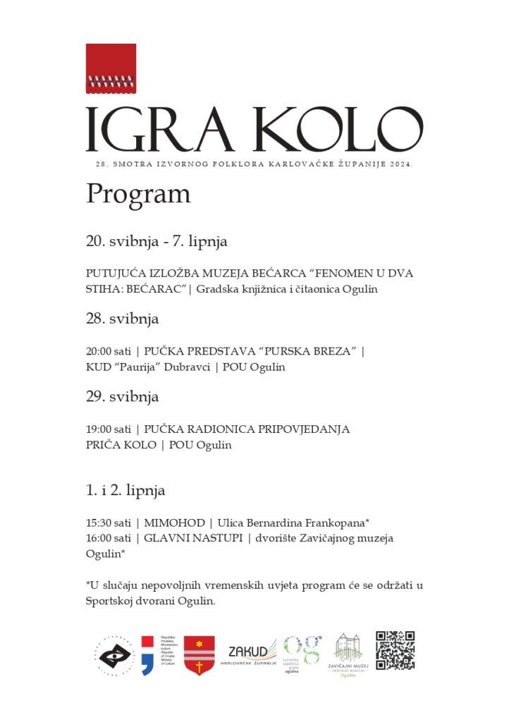 Po 28. puta zaigralo je “Igra kolo” i u Ogulin privuklo oko 900 sudionika iz čak 33 folklorna društva. Ogulin se šarenio i dičio bogatstvom hrvatskih narodnih nošnji te plesao i pjevao uz zvuke tradicijskih instrumenata i tijekom vikenda pokazao djelić silnog hrvatskog baštinskog bogatstva.