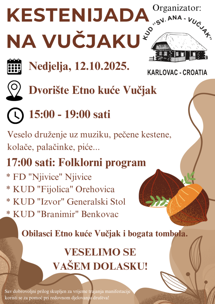 KUD „Sv. Ana – Vučjak“ poziva sve da im se pridruže na tradicionalnoj Kestenijadi na Vučjaku!