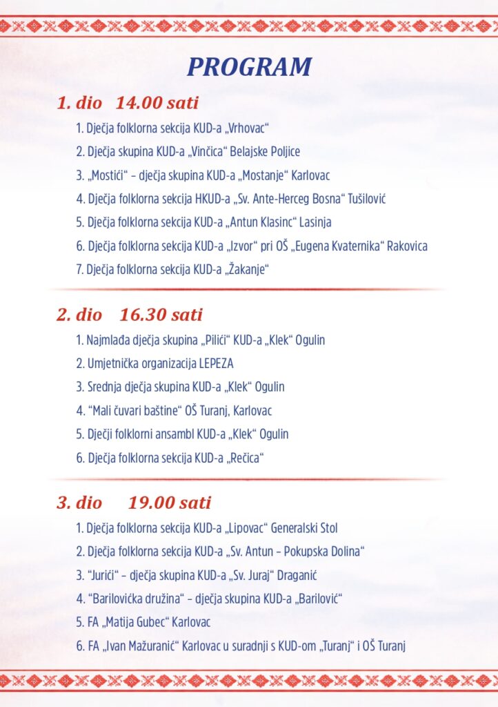 Ova značajna obljetnica okuplja brojne dječje folklorne skupine s područja cijele županije koje će kroz pjesmu, ples i tradicijsko ruho predstaviti bogatstvo kulturne baštine našega kraja.